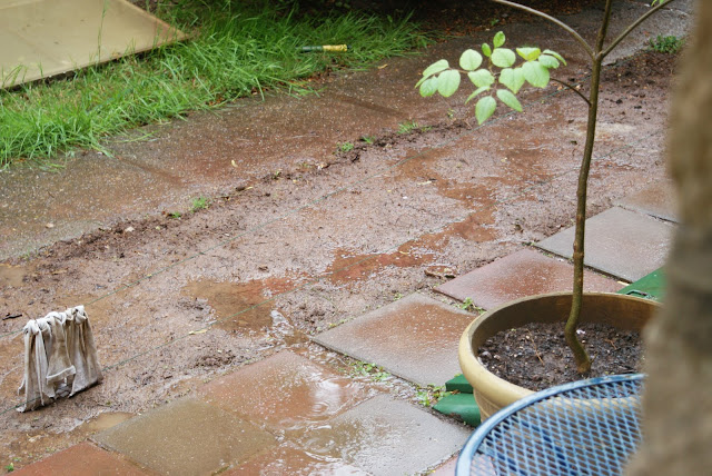 The hedge has been ripped out and the ground pounded to put in the posts. We agonized over which fencing to get. There's lots of beautiful fencing, but not what one can afford. We thought about lattice but that would need all channel edgings, and the lattice was not too strong. We also thought about a privacy fence, but we thought that would be too enclosing. So we decided on the six foot Gothic posts, and the four foot dog ear fencing.