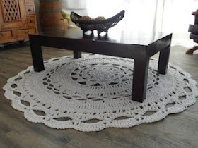 I ran across this on Ravelry and just wanted to share it with you. It is a crochet rug; which is really crocheted the same as a doily only on a giant scale.